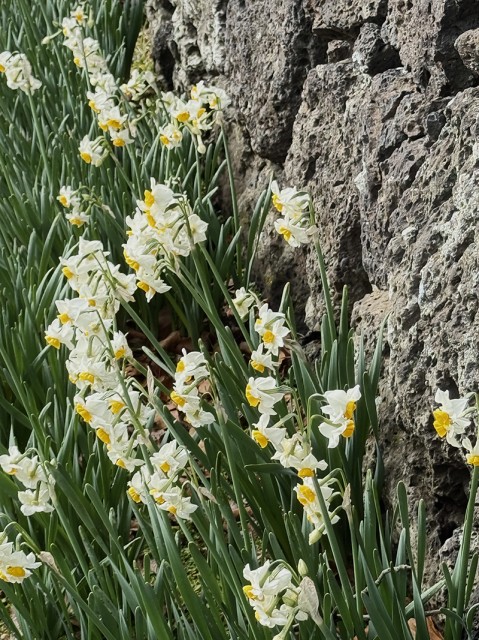 제주 대정읍 추사관 돌담에 피어난 수선화